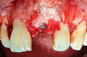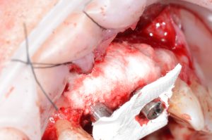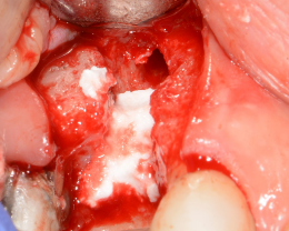 Cel mai vechi biomaterial înregistrat, sulfatul de calciu, este utilizat în chirurgie de peste 120 de ani. Deși nu posedă aceleași capacități de regenerare osoasă ca β-TCP, sulfatul de calciu aduce un beneficiu major: se fixează in situ, creând o grefă stabilă cu o barieră celulară ocluzivă integrată. Acest lucru ajută la prevenirea pătrunderii țesuturilor moi, eliminând necesitatea unei membrane de colagen separate și oferind periostului (și vascularizației aferente) acces direct la locul grefei încă din prima zi.